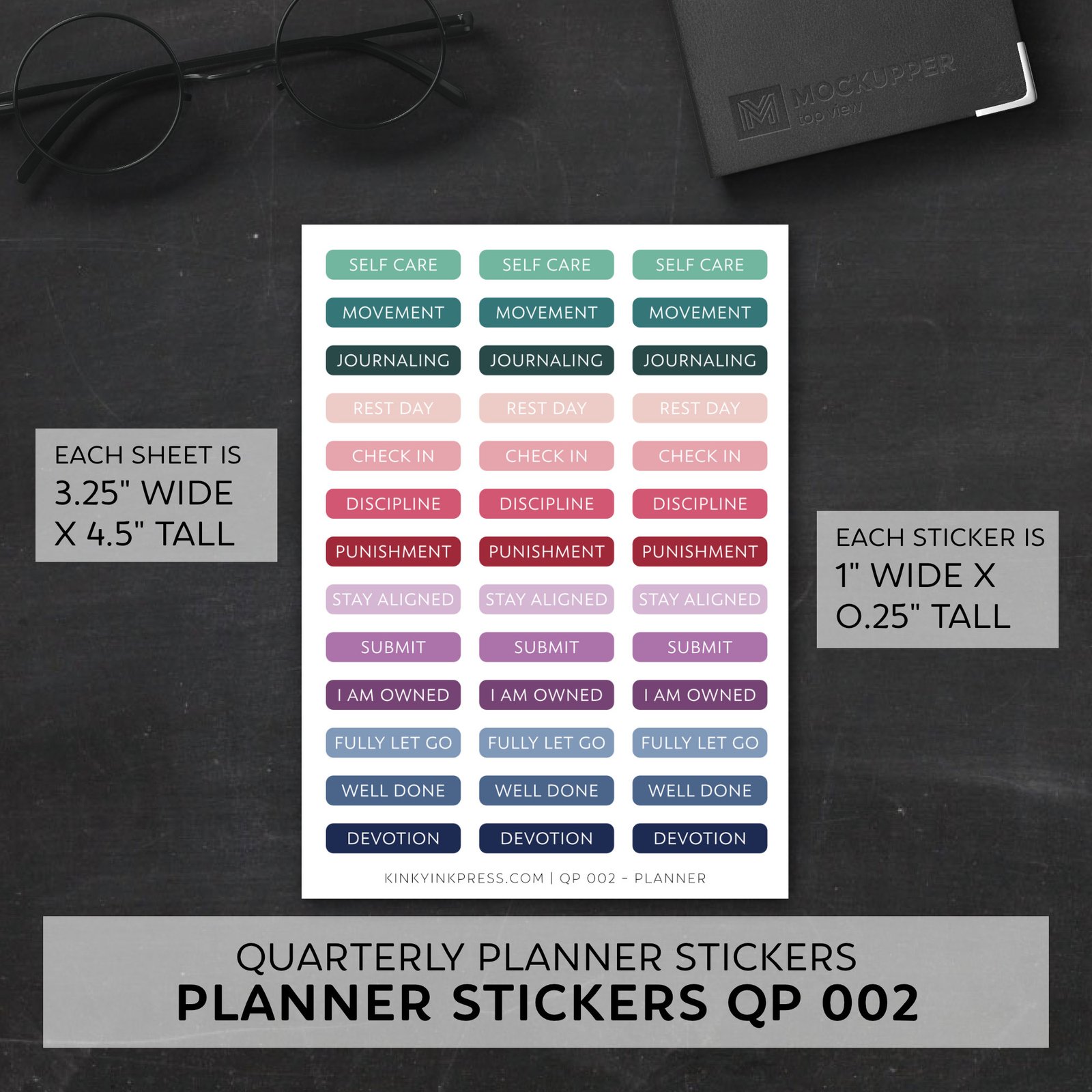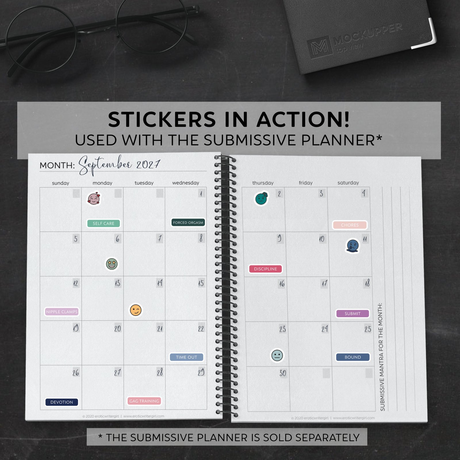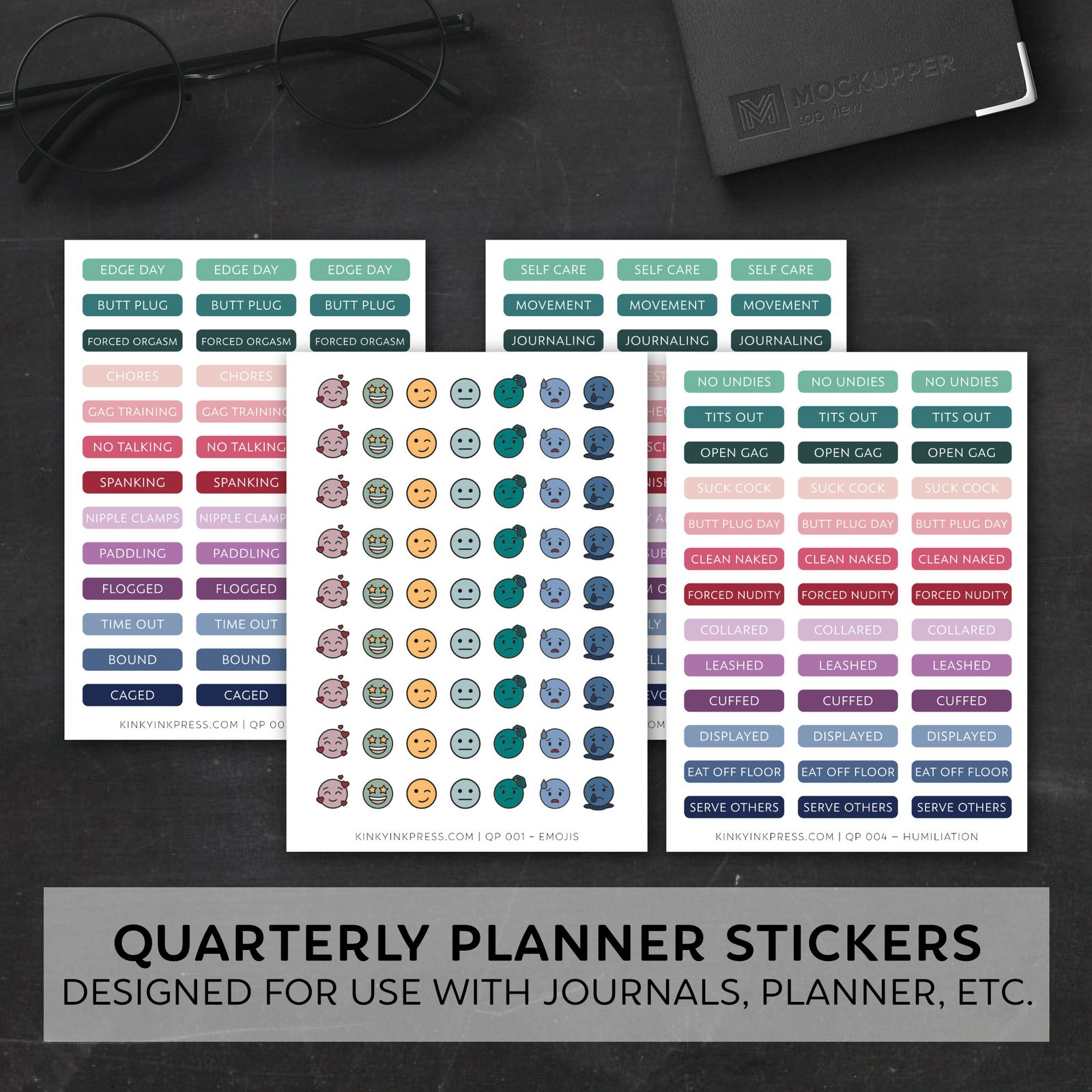 The Quarterly Planner sticker sheets were designed to be used specifically for the Quarterly Submissive Planner (coming soon) but also work perfectly for any planner to help keep your life and your submissive intentions on track.